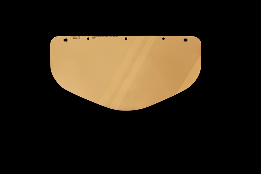 Visiera in policarbonato, verde, rivestimento in oro sigillato, spessore 1 mm .
